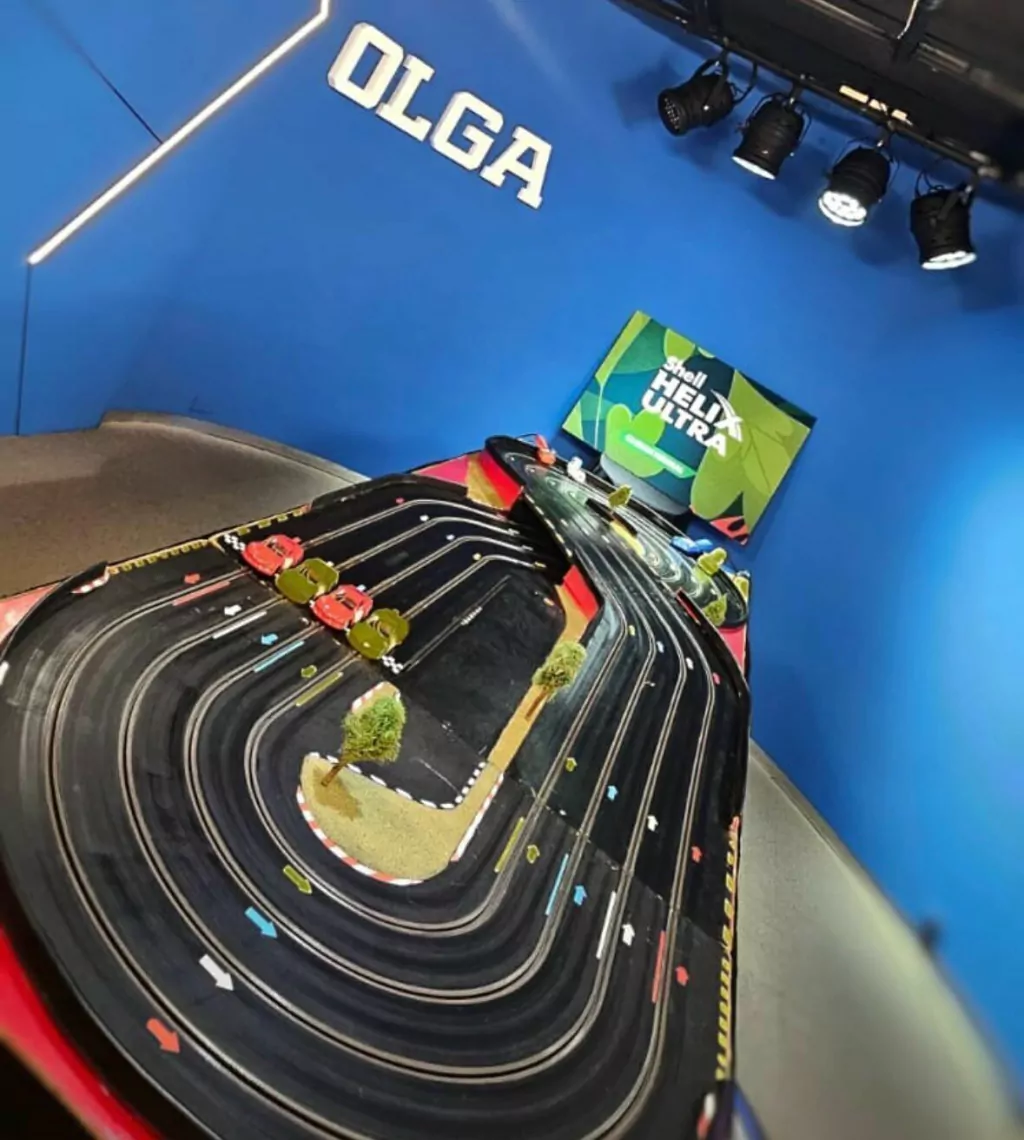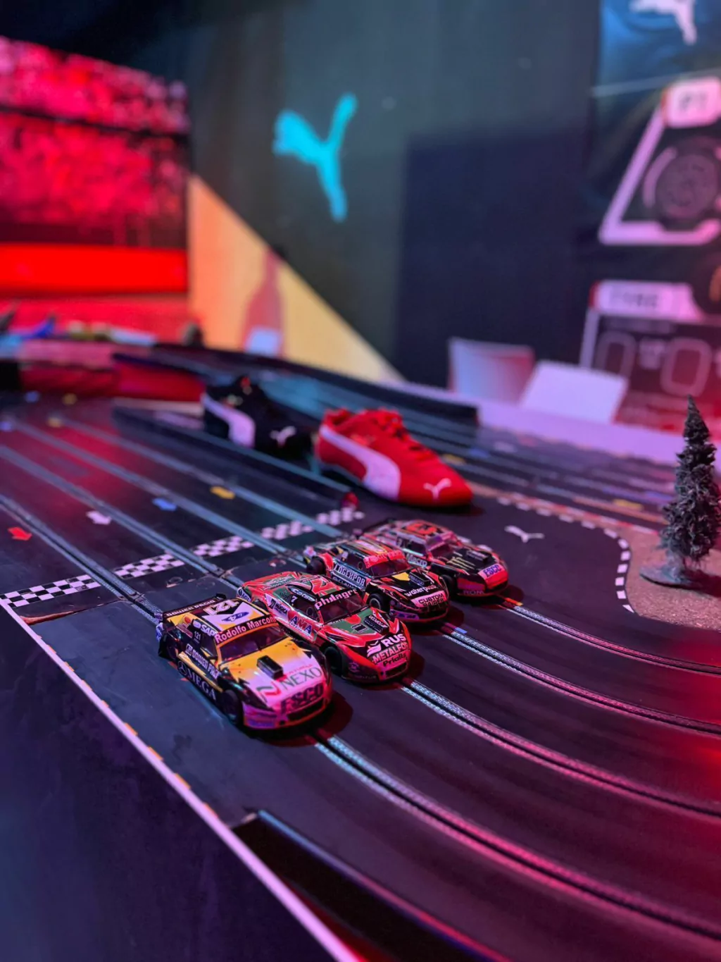 El Scalextric es un juego competitivo, visual y súper atrapante. Dos o más participantes compiten en una pista donde gana quien mejor controle la velocidad sin salirse de la curva.
